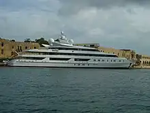 H3 is a Luxury yacht, measuring 105 metres (344 feet 6 inches) in length. Launched in 2000 as Al Mirqab, she had her hull assembled in Durban, South Africa, and then finished at the Oceanco yard in the Netherlands to the design of the A Group. H3 is powered by three 10,000-hp MTU 20-cylinder engines with speeds available of up to 24 knots.