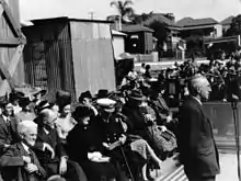 In 1938, the Australian Commonwealth Naval Board (ACNB) identified the need for a general purpose 'local defence vessel' capable of both anti-submarine and mine-warfare duties, while easy to construct and operate.[2][3] The vessel was initially envisaged as having a displacement of approximately 500 tons, a speed of at least 10 knots (19 km/h; 12 mph), and a range of 2,000 nautical miles (3,700 km; 2,300 mi)[4] The opportunity to build a prototype in the place of a cancelled Bar-class boom defence vessel saw the proposed design increased to a 680-ton vessel, with a 15.5 knots (28.7 km/h; 17.8 mph) top speed, and a range of 2,850 nautical miles (5,280 km; 3,280 mi), armed with a 4-inch gun, equipped with asdic, and able to fitted with either depth charges or minesweeping equipment depending on the planned operations: although closer in size to a sloop than a local defence vessel, the resulting increased capabilities were accepted due to advantages over British-designed mine warfare and anti-submarine vessels.[2][5] Construction of the prototype HMAS Kangaroo did not go ahead, but the plans were retained.[6] The need for locally built 'all-rounder' vessels at the start of World War II saw the "Australian Minesweepers" (designated as such to hide their anti-submarine capability, but popularly referred to as "corvettes") approved in September 1939, with 60 constructed during the course of the war: 36 (including Townsville) ordered by the RAN, 20 ordered by the British Admiralty but manned and commissioned as RAN vessels, and 4 for the Royal Indian Navy.[2][7][8][9][1]