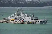 During the mid-1980s, the RNZN began considering the replacement of their four Leander-class frigates.[4] Around the same time, a deterioration in New Zealand-United States relations forced the New Zealand government to improve ties with local nations.[5] As the Royal Australian Navy (RAN) was seeking to replace their River-class destroyer escorts with ships nearly identical to what the RNZN wanted, the two nations decided to collaborate on the acquisition in early 1987.[6][7][8] Tenders had been requested in 1986, and 12 ship designs (including an airship) were submitted.[9][10] By August 1987, these were narrowed down in October to Blohm + Voss's MEKO 200 design, the M class (later Karel Doorman class) offered by Royal Schelde, and a scaled-down Type 23 frigate proposed by Yarrow Shipbuilders.[11][12] In 1989, the Australian government announced that Melbourne-based shipbuilder AMECON (which became Tenix Defence) would build the modified MEKO 200 design.[11][12][13] However, the decision to buy the frigates had been highly controversial in New Zealand, primarily because of the cost of purchasing frigate-type ships, plus the idea that the high-capability warships would be too few and too overspecialised for the fisheries and economic exclusion zone (EEZ) patrols expected to be the RNZN's core operations.[14] Despite ongoing debate, the New Zealand government agreed to purchase two frigates in addition to the RAN's eight, and had an option for two more.[15][16] This option expired in 1997 without the New Zealanders acting upon it; there were proposals to buy a new or second-hand Anzac outside the terms of the original contract, but a lack of political support stopped this developing, and the number built for the RNZN remained at two.[17] The drop in capability and the issue of tying up the Anzacs on EEZ patrols when they could be deployed more suitably elsewhere were factors leading to the RNZN's Project Protector acquisition program.[18]