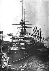 Majestic recommissioned at Portsmouth on 26 February 1907 to become flagship of the Nore Division in the new Home Fleet, stationed at the Nore. She began a refit later that year in which she received radio and new fire control systems.[8] When the flag was transferred to another ship in January 1908, she became a private ship in the Nore Division. In June 1908, Majestic transferred to the Devonport Division of the Home Fleet, stationed at Devonport. Her refit was completed in 1909, and in March 1909 she transferred to the 3rd Division at Devonport, then in August 1910 to the 4th Division at Devonport, where she underwent another refit in 1911. In May 1912, Majestic became part of the 7th Battle Squadron in the 3rd Fleet at Devonport. On 14 July 1912 she collided with her sister ship Victorious during manoeuvres, suffering no serious damage.[3]