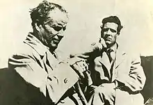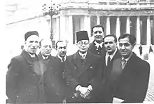 Despite the split-up, the two Bourguibas, El Materi, Guiga and Bahri kept in touch and decided to found their own paper thanks to the aid of pharmacist Ali Bouhajeb.[35] Therefore, on 1 November 1932, was published the first edition of L'Action Tunisienne which had as redactional committee the young team joined by Bouhageb and Béchir M'hedhbi. Thus, Bourguiba devoted his first article to budget.[36] Soon disappointed by the resigned moderation of their elders, the young nationalists unleashed and took the defence of the lower classes. Bourguiba, who saw his popularity increase thanks to his writings, frequented often intellectual circles whom he had just met.[37] He showed both clarity and accuracy in his writings, which revealed a talented polemicist, thanks to his strong legal expertise. Furthermore, he had worked on demonstrating the colonial exploitation mechanism by ascending from effects to causes, while showing a great interest in social phenomenons, inviting the workers and students to organize and thus, defend themselves better against exploitation. In addition, he encouraged the defense and safeguard of the Tunisian personality.[38]