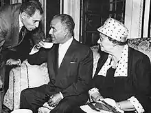 In the context of colonial oppression, Bourguiba felt the effects of inequality. He spent the next year unemployed. This inequality led him to discuss these matters with both Tunisian and French friends, who agreed with the necessity to start a reform process aiming to get Tunisia to resemble France, that was, liberal, modern and secular.[26] On 8 January 1929, while replacing his brother who could not attend a conference held by Habiba Menchari, an unveiled woman who advocated gender equality, Bourguiba defended Tunisian identity, culture and religion by opposing Menchari's position to rid women of their veils. Bourguiba responded saying that Tunisia was threatened by the forfeiture of its personality and that it had to be preserved until the country was emancipated. This statement surprised liberals like the French unionist Joachim Durel. The controversy that followed opposed him to Bourguiba for nearly a month, Bourguiba writing in L'Étendard tunisien while Durel responded in Tunis socialiste.[26]