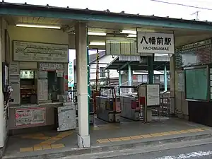 1. 1 2 3 八幡前駅|南海電鉄. www.nankai.co.jp (in Japanese). Nankai Electric Railway. 28 January 2017. Archived from the original on 27 June 2017. Retrieved 6 July 2017. Hachimanmae Station