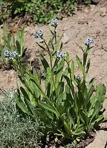 Hackelia nervosa is a species of flowering plant in the borage family known by the common name Sierra stickseed. It is native to the mountains of California, especially the Sierra Nevada and its foothills,[1] in areas with some moisture up to near treeline. Its range may extend into Nevada.