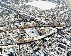 The town has never had a railway station and almost all of its architecture is late 19th and 20th century – only three buildings are listed but one of these is the church, which is Grade I listed.[6]