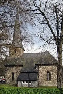 Protestant church of Dahl, with choir and sacristy remaining from before 1729 fire