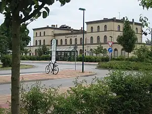 The fact that the Berlin-Hamburg railway ever made a 20 km detour via the comparatively small town of Hagenow, which then had 3400 inhabitants, resulted from the negotiations of the five states of Prussia, Mecklenburg-Schwerin, Denmark, Lübeck and Hamburg on the construction of the line. The Mecklenburg side under Grand Duke Frederick Francis II undertook in a treaty agreed on 8 November 1841 to subscribe half of the share capital and was able to achieve a route that ran close to the Mecklenburg residence in Schwerin.[3][4] Hagenow station was provided for the connection with Schwerin (and later with Rostock and Wismar). Original plans foresaw a railway station close to the town. Finally, however, the committee in charge of establishing favourable grades recorded "that a line from Berlin [...] Grabow, Ludwigslust touching Hagenow and Boitzenburg but running at a distance of 5/8 mile on the right and 1/3 mile on the left [. ..] is preferable to any other line" (note the Prussian-Mecklenburg mile was 7,532.5 metres long).[5]