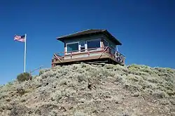 {{cite book}}:|work=ignored (help) - ↑ "Hager Mountain Lookout Recreation Rental", Fremont–Winema National Forest, United States Forest Service, United States Department of Agriculture, Lakeview, Oregon, 20 August 2014.