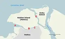 Haidian Island (simplified Chinese: 海甸岛; traditional Chinese: 海甸島; pinyin: Hǎidiàn Dǎo) is an island that forms part of the city of Haikou, Hainan Province, China.[1] It is separated from the main part of Haikou by the Haidian River. The north coast faces the Qiongzhou Strait. The east coast faces Xinbu Island, separated by part of the Nandu River. The west coast faces Haikou Bay.