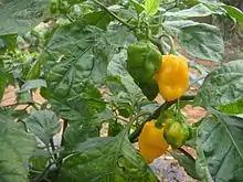 The Hainan yellow lantern chili (Chinese: 海南黄灯笼椒; pinyin: hǎi nán huáng dēng lóng jiāo), also known as the yellow emperor chili (Chinese: 黄帝椒; pinyin: huáng dì jiāo) is a member of the Capsicum chinense species of chili peppers that grows mainly in the southwest and southeast of Hainan Island off the coast of Southern China.[1]