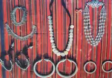 Hajongs are endogamous[1] people. In Hajong society matriarchy declined with the influence of Hinduism, leading towards the growing dominance of patriarchy in Hajong society. When intimacy develops between a boy and a girl without the knowledge of their parents, they are married to each other, provided that they do not belong to close maternal and paternal kinship. Exorbitant dowry system was absent in the Hajong society. The Hajongs would give a tolerable bride price or groom price called pon.[2] Marriage is usually negotiated by the parents through a matchmaker known as Jahu or Jasu. Temporary shrines are set up on the yard, in front of which the wedding ceremony takes place. Four banana trees act as the pillars of the shrine, the shrine is decorated with paper cuttings with intricate motifs. Hajong marriages of the khutri or warrior class have a sword ritual to symbolise the mani katri, a sword given by a girl to her husband to protect her.
