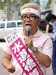 Hakase Suidobashi (水道橋 博士, Suidōbashi Hakase, born 18 August 1962, in Kurashiki, Okayama, Japan)[2] is a Japanese comedian who is a member of the comedy duo Asakusa Kid. His real name is Masayoshi Ono (小野 正芳, Ono Masayoshi).
