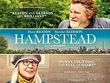Hampstead is a 2017 British drama film directed by Joel Hopkins and written by Robert Festinger. It is based on the life of Harry Hallowes who successfully claimed ownership of a half-acre plot of Hampstead Heath.[4] The film stars Diane Keaton, Brendan Gleeson, James Norton, Lesley Manville, Jason Watkins, Hugh Skinner, and Simon Callow. The film was released on 23 June 2017, by Entertainment One Films.