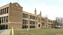 After Hamtramck became a municipality in 1922, every member of the Hamtramck Board of Education was a Pole and most students of the school system were Polish Catholics. In 1925, of the school district's 7,526 students, about 5,400 were ethnic Polish. Half of the ethnic Polish students were non-US citizens. By the mid-1920s, of the school-attending children in Hamtramck 66% attended public schools.[3] The public schools typically had 45 students per classroom while the parochial schools in Hamtramck had 70 students per classroom.[4] In the early 1920s the annual growth rate of Hamtramck Public Schools buildings was 27% while non-public schools had an annual growth rate of 6% in that period.[3] In the 1920s the Polish language became a part of the curriculum at Hamtramck Public Schools. In 1925 655 students attended Hamtramck High School. JoEllen McNergney Vinyard, author of For Faith and Fortune: The Education of Catholic Immigrants in Detroit, 1805-1925, wrote that Hamtramck High had "substantially more students than were in all of Detroit's Polish Catholic high schools combined."[4]