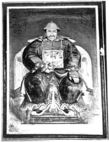 Nonetheless, the family managed to reestablish their power base, and remained influential as landowners and in public administrators in Surabaya and East Java until the Indonesian revolution (1945—1950).[1][3] Indeed, in Han Tjiong Khing (1866—1933), the family provided Surabaya with its last Majoor der Chinezen.[1] Beyond East Java, prominent branches were also established in Batavia, Semarang and Aceh in the second half of the nineteenth century.[1] The prominent politician Hok Hoei Kan (1881—1951), member of the Volksraad, chair of Chung Hwa Hui (CHH) and community leader, belonged through his father to the Batavia branch of the family.[7] Kan's distant cousin, parliamentary and CHH colleague Han Tiauw Tjong belonged to the Aceh branch of the family.[1]