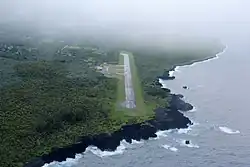 Hana Airport (IATA: HNM, ICAO: PHHN, FAA LID: HNM) is a regional public use airport of the State of Hawaiʻi on the east shore of the island of Maui, three nautical miles (5.6 km; 3.5 mi) northwest[1] of the unincorporated town of Hana. The airport was officially opened on November 11, 1950.[2] It is primarily a commuter facility used by unscheduled air taxis and general aviation. As air traffic increases, the Hawaiʻi State Legislature will consider future improvements including the construction of a taxiway paralleling the runway, widening of access roads and expansion of passenger terminals and parking facilities.