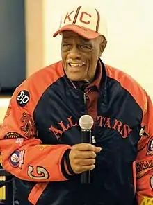 Presswood played with the Buckeyes until they folded in the 1950 season. Following a year off, he was picked up by the Kansas City Monarchs, who were managed by the legendary Buck O’Neil.[4] Presswood played with the Monarchs as a third baseman from 1952 to 1953, in a time when Ernie Banks was their regular shortstop.[5] O’Neil gave Presswood the nickname of 'Baby', which stuck with him well after his career was over. Besides, O’Neil also served as his mentor both on and off the field.[4]