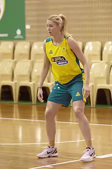Zavecz has played in Australia's WNBL.[3][8][12] In 2002 and 2003, she had a scholarship with the Australian Institute of Sport and played for the AIS WNBL team.[1][5][8][12][13] While at the AIS, they ingrained in her the need to eat healthy.[5] While on road trips with the WNBL AIS team, they were never allowed to eat fast food.[5] She signed with the Bendigo Spirit in 2008.[3][8] She played for the Bendigo Spirit in the 2008/2009 season in the forward position.[14] Going into the 17th round, she was averaging 6.2 points and 4.6 rebounds per game.[14] She missed six games in the first sixteen rounds because she was injury, most of them before the WNBL Christmas break.[14] She played for the Bulleen Boomers in 2010/2011, her first year with the team.[15] Early in the season, she missed the first two games which were Bulleen losses.[15]