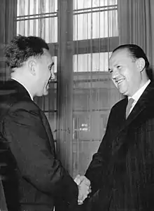 Bentzien was appointed culture minister in February 1961, replacing Alexander Abusch in the post.[1][4] Bentzien was removed from office in January 1966 due to the alleged violation of the SED rules.[4][5] The reason for his removal was the publication of several writings in Neue Deutsche Literatur (German: New German Literature) which supported views opposite to the position of the SED.[5] In the same move Kurt Turba, head of the youth commission at the Politburo of the SED's Central Committee, was also fired.[5] Klaus Gysi succeeded Bentzien as minister of culture.[3]