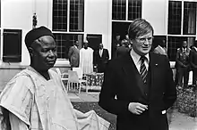 President of Cameroon Ahmadou Ahidjo and Deputy Prime Minister Hans Wiegel during a meeting at the Catshuis on 5 July 1979.
