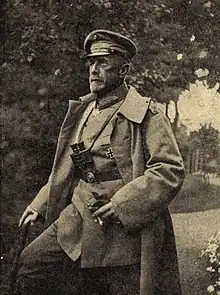 During the early part of the First World War Guretzky-Cornitz commanded the 9th Reserve Division. The division took part in the Battle of Verdun in 1916 and seized the village of Vaux-devant-Damloup from French troops in early March. On 9 March Guretzky-Cornitz received reports that his troops had captured the key French fortification of Fort Vaux. It was believed that the French had abandoned the post as they did earlier at Fort Douaumont.[3] The report had come from a forward infantry officer. The brigade commander raised doubts but apparent confirmation came from an artillery observer who reported seeing a German flag on the fort glacis and other observers reported sighting German troops at the fort with piled arms. The brigade artillery commander noted that this was unlikely but was ordered to cease firing on the fort immediately.[4]