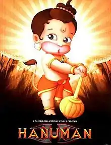 Hanuman is a 2005 Indian animated feature film directed by V. G. Samant and produced by Shailendra Singh at Percept Picture Company[2] and Silvertoons. The animated film dramatizes the life of its title character, Hanuman, a Hindu Deity. The animation was created by Silvertoons. It is India's first full-length fully animated feature film to be released theatrically[3] (there were several earlier ones made by Pentamedia Graphics). The film popularised animation and kickstarted the growth of India's animation industry.[4]