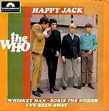 "Happy Jack" is a song by the British rock band the Who. It was released as a single in December 1966 in the United Kingdom, peaking at No. 3 in the charts.[1] It peaked at No. 1 in Canada. It was also their first top 40 hit in the United States, where it was released in March 1967 and peaked at No. 24.[1] It was included on the American version of their second album, Happy Jack, originally titled A Quick One in the UK.