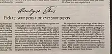 1. Sloat, Sarah (2015-06-03). "Want Your Writing to Look Like Einstein's? Computers Mimic Handwriting of the Famous". Wall Street Journal. ISSN 0099-9660. Retrieved 2019-02-12.