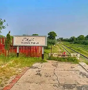 Haranpur Junction Railway Station (Urdu: ہرن پور جنکشن ریلوے اسٹیشن) is located in Pakistan. The station is 9 km from Malakwal Junction railway station.[1]
