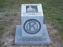 The marker placed near Church Avenue at the dedication of the Hardy Trail in Dade City, Florida