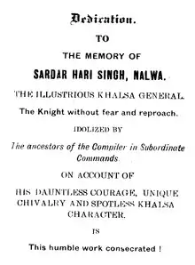 • Dial, Ram (1946). "Jangnama Sardar Hari Singh". In Singh, Ganda (ed.). Punjab Dian Varan. Amritsar: Author.