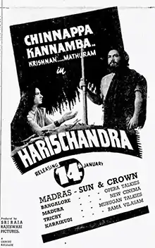 Harischandra is a 1944 Indian Tamil-language film directed by K. Nagabhushanam and written by T. C. Vadivel Nayakar, starring P. U. Chinnappa and P. Kannamba.[2] It is based on the legend of king Harishchandra.[3]