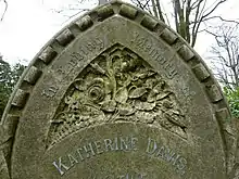 Charles Farrar Forster (1848–1894) was the first vicar of Beckwithshaw Church, dedicating himself to parochial work despite severe pain due to heart disease.[52][53][54] Gertrude Alina Paitson (1880–1921) was a nurse; her monument is a stone cross.[55] Emily Perry, a nanny who died in 1941, was buried under a stone Celtic cross in the same grave as the family she cared for at Grey Court, 57 Kent Road, Harrogate, the residence of John Joseph Prest (1859–1933), JP.[56] Arthur Vasey Thomas (1906–1930) of Nitter Hill and Oakdale Farm, Penny Pot Lane, Harrogate, died in a road accident. He overtook a motor-bus and hit a bus coming the other way, near Pateley Bridge.[57][58] Samuel George Mower Webb (1843–1929) was rector or vicar of All Saints Church, Saxton with Scarthingwell (1878–1903), of St Mary the Virgin, Kirk Fenton, West Yorkshire (1903–1911), and of St Andrew's Church, Newton Kyme (1911–1912).[59][60] Atherton West (1954–1923) was a weaving master of Elgin Mills, Kanpur, who founded Victoria Mill, now Atherton Mills, in Kanpur, India in 1885.[61][62] John Arthur Green (d.1926) was one of the founder members and first secretary of the Yorkshire Ramblers' Club, and a runner in Leeds Harriers in the late 1880s. He worked for the North Eastern Railway, and for Beckett's Bank. He was manager in turn of Leeds, Mansfield and Harrogate branches of the Yorkshire Penny Bank. He was a climber and potholer, and was one of the first party to descend Pillar Pot and Rift Pot.[63] Margaret Ingilby or Ingleby (1827–1894) was one of the Ingilbys of Lawkland Hall, Lawkland, who in turn were related to the Ingilbys of Ripley Castle.[64][65][66] Landscape painter Bernard Walter Evans was buried here in 1922.[67]