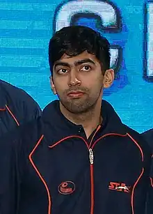 Harmeet Desai (born 19 July 1993) is an Indian table tennis player. He is currently ranked 71 in the world as of August 2021. He is from Surat.[1][2][3] [4] In 2018 Commonwealth Games held at Gold Coast, Australia, He won gold in men's team event with Sharath Kamal, Anthony Amalraj, Sathiyan Gnanasekaran & Sanil Shetty[5] and bronze in Men's doubles event with Sanil Shetty.[6] Harmeet Desai won the men's singles title at Commonwealth Table Tennis Championships 2019 at Cuttak, India defeated favorite Sathiyan Gnanasekaran to claim the men's singles title.[7] He has been honoured with the Arjuna Award by the Ministry of Youth Affairs and Sports, Government of India in 2019.[8]