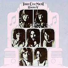 Harmony is the seventh album by American rock band Three Dog Night, released in 1971 (see 1971 in music). The album featured two Top 10 hits: "An Old Fashioned Love Song" (U.S. #4)[4] and a cover version of Hoyt Axton's "Never Been to Spain" (U.S. #5).[5]