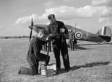 Ammunition belts being prepared for a Hawker Hurricane during the Battle of Britain