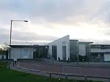 A new build.[43][44] The building was intended to combine a nursery, primary, secondary and public library for the local area. It was constructed by Nicholas Hare Architects and Crofton Consulting. The building is three storeys tall with three halls, a cafeteria, and over 50 classrooms including specialised ones for science, computing and DT. The two primary and secondary schools, and the sixth form, are all accessible by Mayflower Road. The library, once open to the public, has since been closed. Since opening the school has undergone two extensions.[45]