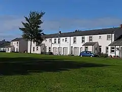 In July 1974, Allerdale Borough Council took the extraordinary step of condemning the village in its entirety;[16] and the houses many of which were owner occupied became the subject of a compulsory purchase order. The village with few proper bathrooms would have been razed to the ground had it not been for the efforts of a few local councillors. Instead it became the subject of a prestigious rebuild and a short residential relocation. The village was designed to echo the local architectural traditions of rendered and painted houses. Whilst some original materials such as slates and pavings were salvaged from the old village, most of the new building is in concrete. The entire load bearing superstructure of the new houses is of concrete blocks faced externally with a painted sand and cement roughcast rendering. Floor units, lintels and sills are of precast concrete.[17]