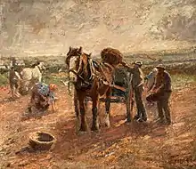 Harry Fidler (1856–1935) was a British painter known for including farm animals and especially horses in his impressionistic paintings, typically using heavy impasto. He married Laura Clunas (d. 1936), who was an artist with a similar style.