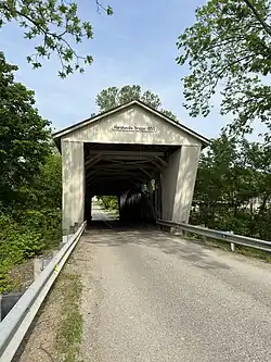 The Harshaville Covered Bridge is a historic covered bridge spanning the Cherry Fork Creek at Harshaville, Adams County, Ohio, United States. Built in 1855, it is a Burr truss bridge with a 110-foot span.[2][3] It has sheet metal siding, a metal roof and stone abutments.[3] It was listed on the National Register of Historic Places in 1976.[1]