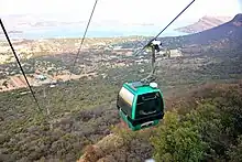 The Hartbeespoort Aerial Cableway (or Harties Cableway), originally constructed in 1973, is a 1.2 km long cableway that extends to the top of the Magaliesberg and offers panoramic views of the Magaliesberg, Hartbeespoort Dam and the surrounding area. It is situated 1 km to the north of the town of Hartbeespoort in the North West Province, and is the longest mono-cableway in Africa.[1] In 2010 the cableway was completely revamped and modernised by Zargodox (Pty) Ltd, and officially reopened on 14 August 2010 by the then Minister of Tourism Marthinus van Schalkwyk.[2] The aerial cableway is open seven days a week.[3]
