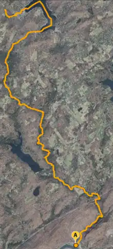 Much of Harveys Creek, in its lower reaches, is in a forested gorge.[8][11] The upper reaches of its watershed contain swamps and glacial lakes.[8] The cliffs of Tilbury Knob are also situated near the mouth of the creek.[11] The creek's source is in Harveys Lake, which is the largest natural lake in Pennsylvania.[8][12] It flows in a generally southward direction.[8]