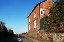 Several brick houses built between the 17th and mid-19th centuries are also listed at grade II. Part of Park House on Park Lane dates from the 17th century and is in brick described by Historic England as "plum coloured". The three-bay main façade dates from the early 19th century and uses orange-red brick with stone dressings; it features a Tuscan porch.[24] Bank House, on Audlem Road by Oakes Corner, dates originally from the late 17th or early 18th century, and is in plum-coloured brick with stone dressings under a tiled roof.[25] Hatherton House on Broad Lane dates originally from the late 18th or early 19th century. Its three-storey, three-bay main façade is in red brick with stone dressings, with decorative yellow-brick quoins. The arched ashlar doorway features pilasters and carved wreaths; above it is a first-floor window whose stone surround is topped with a pediment.[26] The early 19th-century Hatherton Lodge stands on Lodge Lane, on the site of an earlier lodge, and is described by Historic England as an example of the Picturesque Movement. The L-shaped villa has a stucco-rendered front façade of three bays with stucco quoins. The central limestone portico with Tuscan columns has a bow window above it.[27] The Broomlands on Birchall Moss Lane is a large mid-19th-century former country house, now divided into three, which has a rendered finish and a slate roof. The entrance front has a colonnade porch with stone Doric columns, and the five-bay garden façade features two small bows.[5][28] A disused 19th-century road bridge over Birchall Brook, on the boundary with Hankelow, is also listed; it is in red brick with stone dressings.[29]