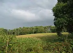 The River Weaver runs north–south forming the western boundary of the parish, Artle Brook runs on or near the northern boundary, and Birchall Brook forms part of the south-western boundary. The terrain is undulating, sloping more steeply down to the Weaver in the west, with a lowest elevation of around 38 metres (125 ft) along the Weaver. The highest area is in the south of the parish, around Birchall Moss and south of Bridgemere Lane, at around 72 metres (236 ft). The entire civil parish is classified by Cheshire Wildlife Trust as "Lower Farms and Woods", and the area in the south of the parish around Birchall Moss has been identified as a key area for wildlife.[13] There are numerous small meres or ponds, as well as small areas of deciduous and mixed woodland, including Birchall Moss, Birchenhill Wood, Acton's Rough, Lane Wood, Gorse Wood, Chestnut Wood and Blackthorn Wood.[2][3] Chestnut and Blackthorn Woods, which line Birchall Brook on the boundary with Hankelow, are marked on tithe maps and might represent small patches of ancient woodland.[14]