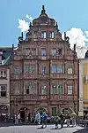 The Hauptstrasse runs right through the Altstadt from Bismarckplatz in the west to the Karlstor in the east, with a slight bend following that of the Neckar river. Between Theaterstrasse and Universitätsplatz, there is a slight rise, which is caused by the alluvial fan of the now subterranean Klingenteichbach stream. The street is around 1.8 km long.[1] It is crossed by numerous streets running from north to south (mostly called Gassen, "alleys") and there are five squares along its route. One of these, the Marktplatz was planned as a market place from the beginning, while the other four - Anatomiegarten, Universitätsplatz, Kornmarkt, Karlsplatz - were created through the demolition of buildings.
