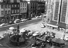 The Hauptstrasse in the Marktplatz, when still open to cars, 1965