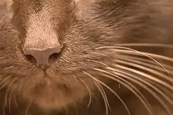 The Havana Brown is a well balanced, moderately sized, muscular short-haired cat with a body of average length. Sterilized animals can tend to become larger and somewhat chubby. They are a moderately active breed, compared to other short-hair cat breeds.[1] The coat color must be warm brown, typically reddish-brown, with no obvious tabby markings (note that kittens will always show markings but they resolve as the cat ages and dissolve completely by one year). Whiskers must also be brown and the eye color green. The head should be slightly longer than wide, but should never appear like a wedge. In profile, the nose/muzzle should have a distinct stop and change in direction at the eyes. Paw pads must be pink or rose colored but should never be black. Ears tend to be moderately large. A Havana Brown should have no extreme features; specimens should be attractive and moderate. Males tend to be larger than females and are average in weight compared with other breeds.