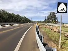 Route 56, also known as Kuhio Highway, is the main highway on the north and east shore of Kauaʻi island in Kauai County, Hawaii, United States.