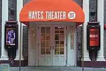 After Second Stage finally raised enough money to buy the theater, Tick's family and Markinson requested that the sale be delayed until Rock of Ages closed.[286] In February 2015, Second Stage sued the Hayes's owners for allegedly reneging on the 2008 sale agreement.[286][287] Second Stage alleged that Tick's family and Markinson were trying to invalidate the sale by rushing the closing process.[286] While the sale was supposed to have been finalized on February 17, Second Stage did not have enough money at that time to cover the $25 million purchase price.[288] By then, the costs of acquiring and renovating the theater had increased to $58 million from $35 million.[286][288] In response, Markinson said he would sell the theater at the agreed price of $24.7 million if Second Stage could get the money.[289] The dispute was resolved in April 2015, when the sale of the Hayes to Second Stage was finalized.[290][291] With the sale, Second Stage became one of four nonprofit theater companies to own and operate Broadway theaters.[288][291][lower-alpha 6] Before a planned renovation, the Hayes hosted short runs of the off-Broadway hit Dames at Sea in 2015[294][295] and then The Humans in 2016.[296][297]