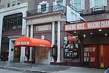 The Humans relocated to another theater in July 2016 to make way for Second Stage's renovation.[297] Second Stage ultimately spent $64 million, including $28 million for the actual purchase, $22 million for renovation, and $14 million for programming.[298] Jordan Roth of Jujamcyn Theaters, which operated the neighboring St. James Theatre, approached Second Stage about the possibility of simultaneously renovating both theaters.[299] Second Stage sold the alley between the theaters to Jujamcyn,[300][301] which helped Second Stage fund the cost of renovating the Hayes.[298] The Rockwell Group was hired as the architect.[25][30] The project added an elevator, restrooms, and mechanical systems. In addition, the dressing rooms were relocated from the basement to the third floor.[30][302]